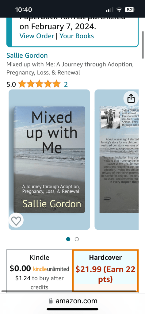 My book, “Mixed up with Me: A Journey through Adoption, Pregnancy, Loss, & Renewal” is available now on Amazon in Kindle, Paperback, or Hard Cover! Check it out!
